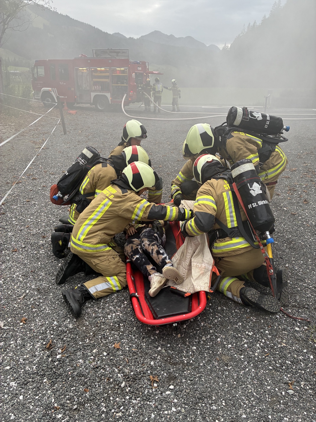 (MM) Die Hauptübung am Montag, 22.9.25 fand bei der Tischlerei Wagstätter Robert in Schwendt statt. Dabei galt es einen Brand mit starker Rauchentwicklung in der Tischlereiwerkstatt zu löschen und Personen ins Freie zu sichern. Die Feuerwehr St. Ulrich a.P. hat mit allen 4 Fahrzeugen und gesamt 38 Mann/Frau an der interessanten Übung teilgenommen. Danke an das Vorbereitungsteam unter Zugskdt Koblinger Daniel und den Darstellern für die realistische Übung. Ebenso ein großer Dank an den Besitzer für die Bereitstellung des Übungsojekts.